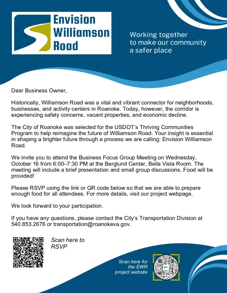 Focus Group Invitation to All Williamson Road Business Owners
